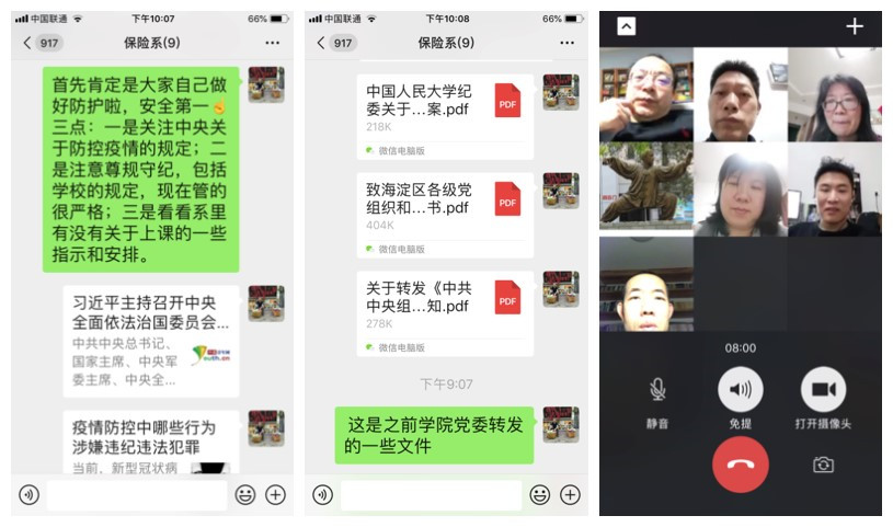 根据学院党委的通知要求,保险系党支部于2020年2月10日晚召开支部党员大会,开展“抗击疫情,党员先行”线上主题党日活动。支部七位党员教师全部参加,保险系非党员教师陈泽也参加了此次线上活动。党员教师通过文字和视频会议的方式展开了讨论学习,分享了各自的学习体会。大家表示下定决心,做好疫情防控,在各项工作中听从组织安排,坚决遵守组织纪律。