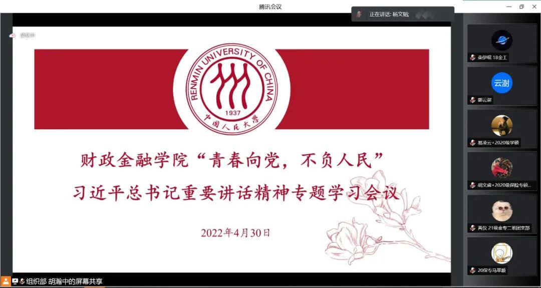 4月30日晚,夜色 党委、团委通过腾讯会议平台联合开展习近平总书记在夜色 考察时的重要讲话精神专题学习会,学院全体党支部书记和团支部书记参加会议。本次会议由学院团委组织部邱晓雯主持。