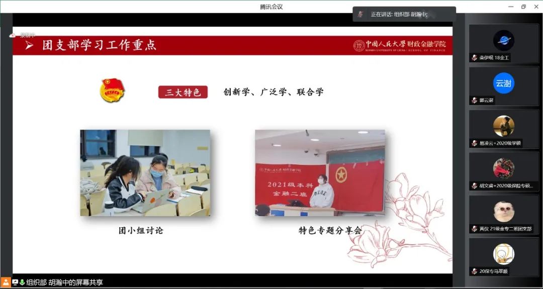 学院组织部负责人胡瀚中布置团支部学习工作,明确各团支部线上录入和材料提交的要求及注意事项,鼓励各支部在组织、策划、开展支部学习活动时,做到创新学、广泛学、广泛学和联合学。他表示,要进一步创新学习形式,根据支部自身情况选择线上或线下开展活动,采用团小组讨论,特色专题分享,理论学习研讨,实践参访等方式;要注意学习材料广泛性,通过多种渠道了解本次讲话的背景,结合重大时间节点做到全方位、立体化学习;鼓励各支部以党团共建、支部共建方式开展学习,发挥支部党员带头模范作用。