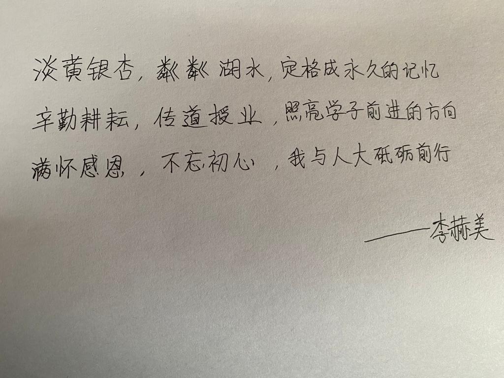活动的第二个环节是手写三行情书祝福母校。在这一环节,参加活动的党员同志每人手写了一份三行情书祝福母校。有的党员同志对于母校艰苦奋斗的历史十分感慨,写下了“你是我唯一的信仰”;有的党员同志借助刚才学习过程中突发的灵感,写下了“七十载悠悠岁月,时光同你慢慢成长”;还有的党员同志则拿出了自己深思熟虑构思已久的作品,现场朗诵给了大家。对于好的作品,大家纷纷讨论赞叹,现场的气氛热烈而融洽。主题党日活动在大家的热烈讨论中结束。