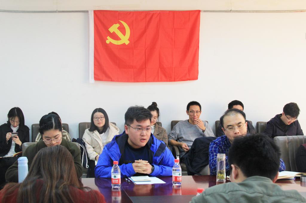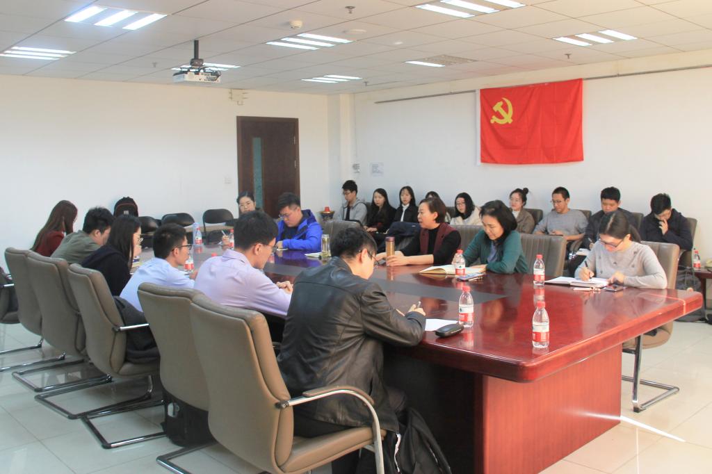 11月8日中午12点半,夜色 党委“不忘初心、牢记使命”主题教育“加强基层党组织建设”专题研讨会在明德主楼714会议室召开。学院党委书记孙华玲,党委副书记宋科、赵锦兰出席会议。本次活动由学院党务秘书兰青主持。学院本硕博各学生党支部书记、学生党建工作部成员代表参加活动.