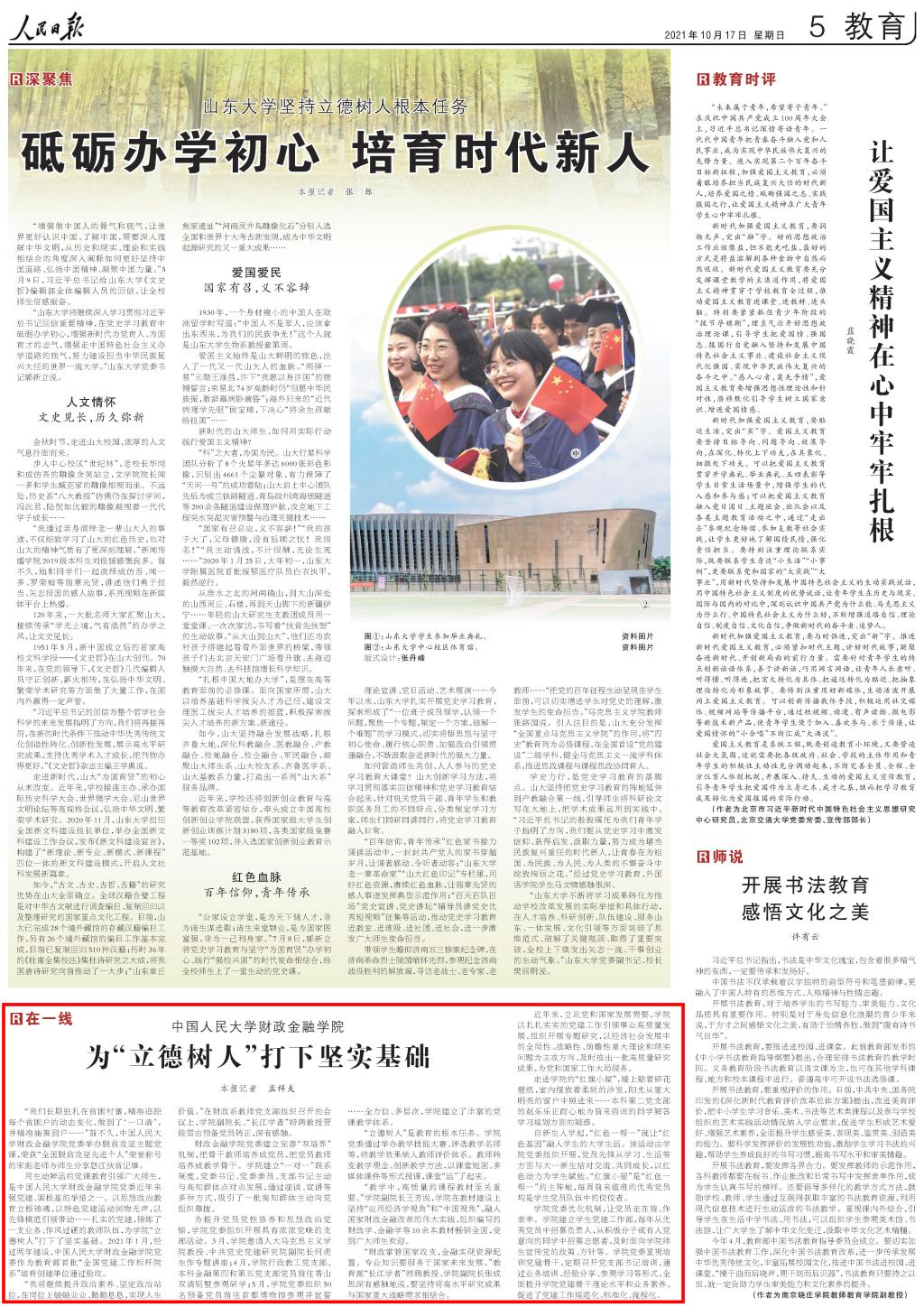 10月17日 ,《人民日报》第5版(教育版)刊发题为《夜色 为“立德树人”打下坚实基础》的报道,对我院以高质量党建引领学院发展,全面落实立德树人根本任务进行了深入报道。报道全文如下: