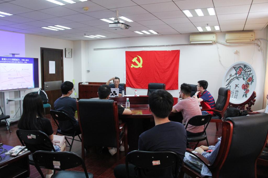 2018年6月8日下午,我院2016级学硕一班党支部在明德主楼713教室开展“不忘初心,牢记使命”党课学习活动。本次活动由党支书王睿主持,支部“一联系一帮扶”理论导师郭庆旺教授主讲,支部党员参与了此次会议。