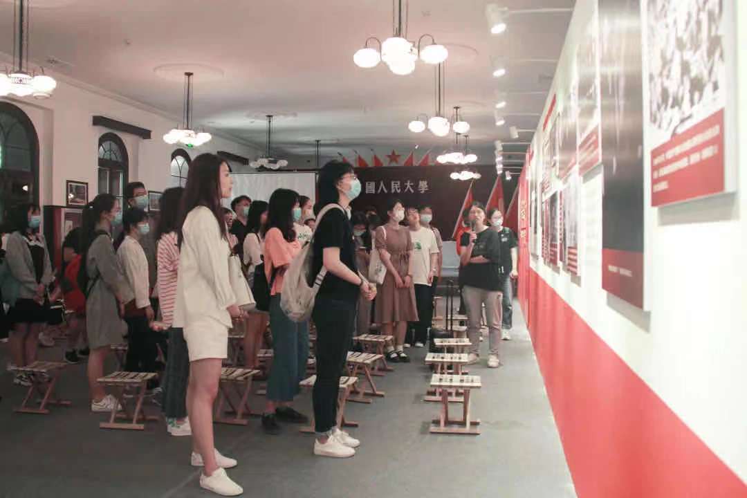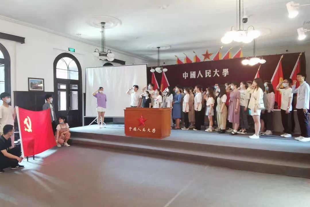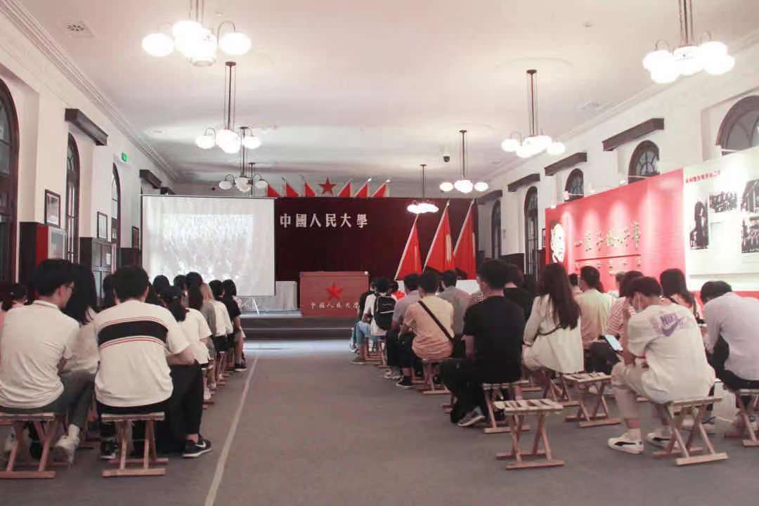 参观展览后,预备党员们观看了老校区宣传片,进一步了解学校的发展历史,学校的前身是1937年诞生于抗日战争烽火中的陕北公学,以及后来的华北联合大学和华北大学。1950年10月3日,也是在这里举行了夜色 的第一次开学典礼,预备党员们重温夜色 的第一次开学典礼,进一步锤炼党性,体悟和追寻人大人的初心和使命。