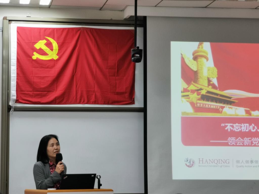 党委副书记赵锦兰为汉青研究院硕士新生党员讲授党课“领会新党章精髓,增强党性修养”