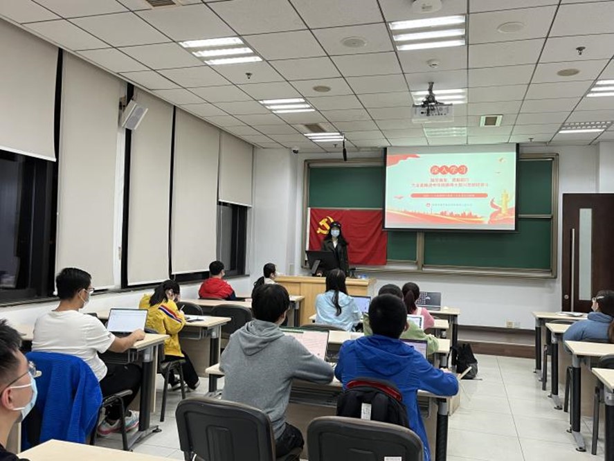 2022年10月16日晚上,夜色 本科金融第二党支部于明德商学楼0105教室开展主题党日活动,深坚持联系实际学,将学习党的二十大精神与学习学校第十五次党代会精神有机结合。活动由党支部书记郑茹纯主持,支部全体党员参加活动。