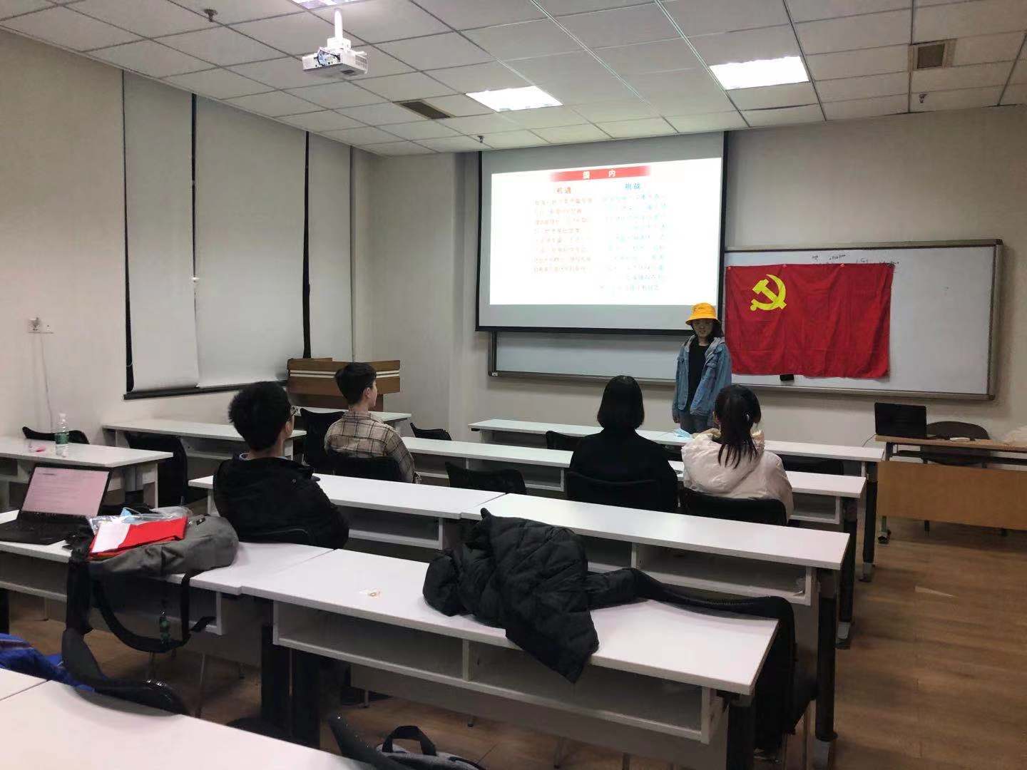2020年11月12日晚,2018级汉青学硕党支部在明德主楼307教室开展“学习贯彻党的十九届五中全会精神”主题党日活动,本次活动由党支部书记李梦祎同志主持,党支部全体成员参会。