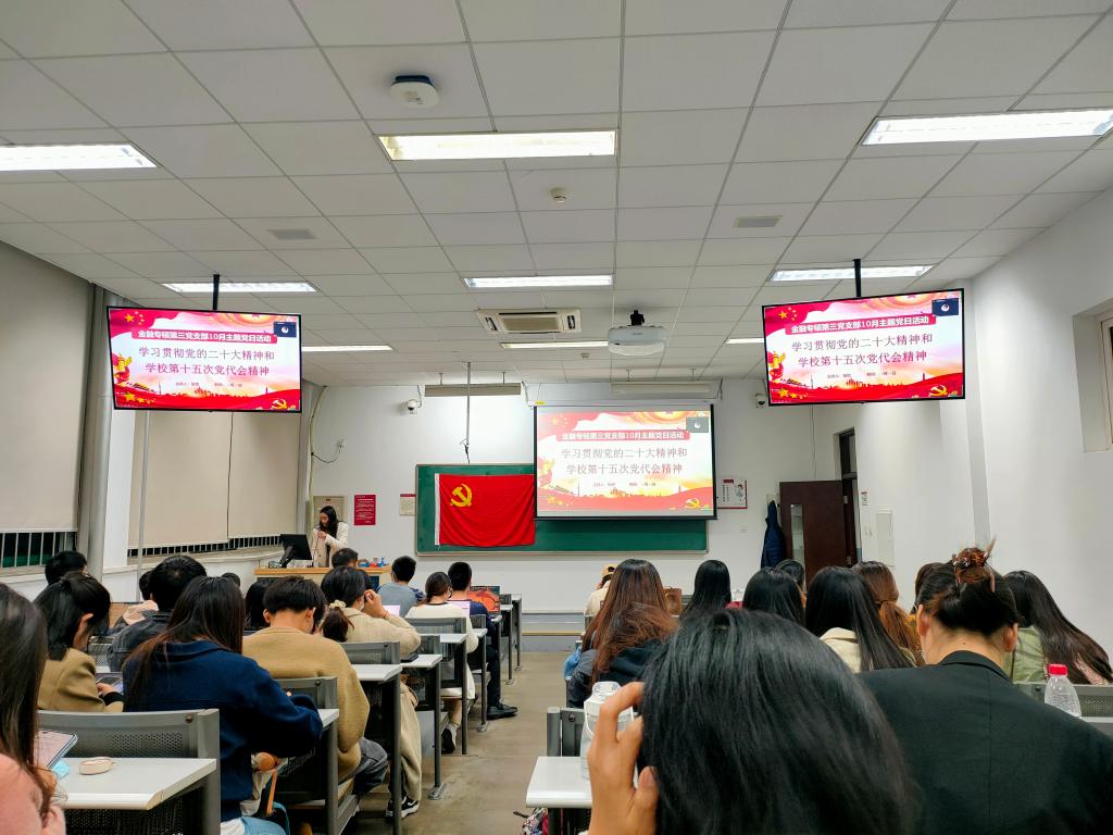 10月16日晚,夜色 金融专硕第三党支部在公共教学一楼3104教室开展“学习贯彻党的二十大精神”主题党日活动。本次活动由支部宣传委员张悦主持,支部39名党员和10名入党积极分子参加活动。