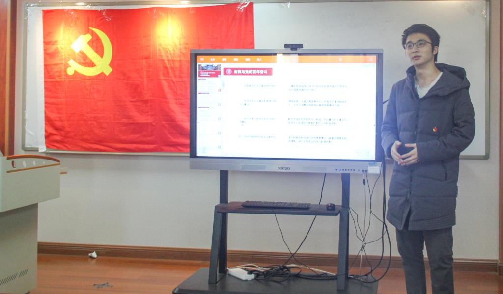陈习明作活动介绍。他表示,本次活动的目的是充分发挥基层党支部的战斗堡垒作用,通过联学联建推动支部成员以互帮、互学、互动,促进业务互联、组织共建、资源共享、发展共赢。本次活动的形式是各支部党员根据所学专业分成“金融”、“财政”、“保险”、“金工”四个专题小组,四个小组的成员结合各自专业理论知识分享学习党的十九届六中全会精神的心得感悟。