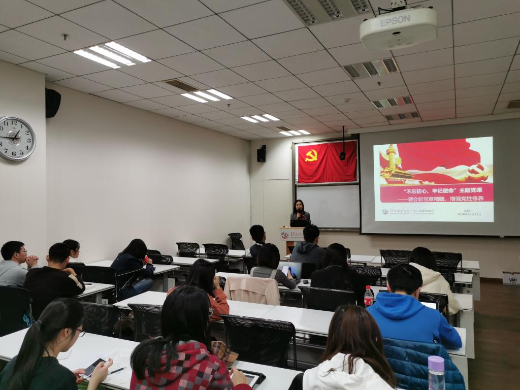 张成思副院长为2019级金融专硕三班党支部讲“不忘初心、牢记使命”主题党课