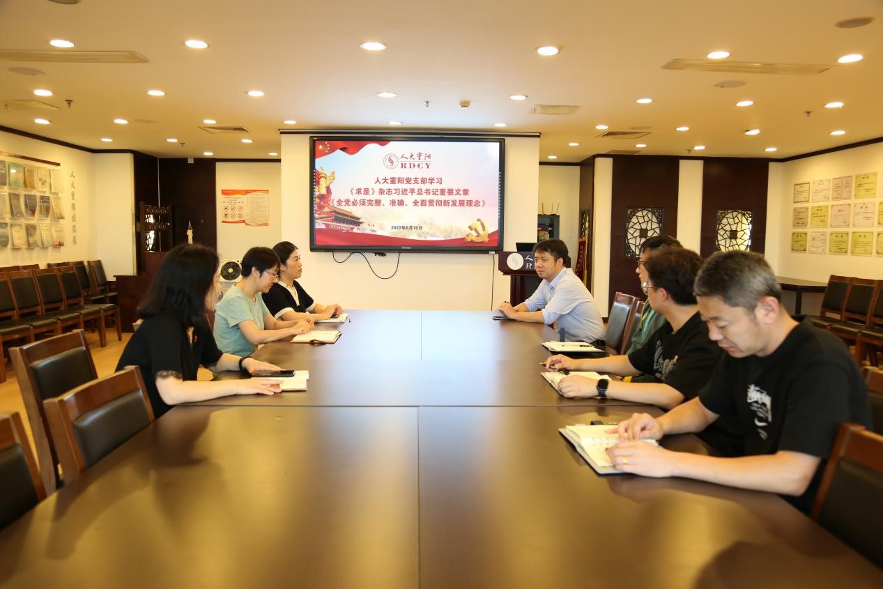 主题党日 | 人大重阳党支部开展专题学习活动,传达学习习近平总书记重要文章《全党必须完整、准确、全面贯彻新发展理念》