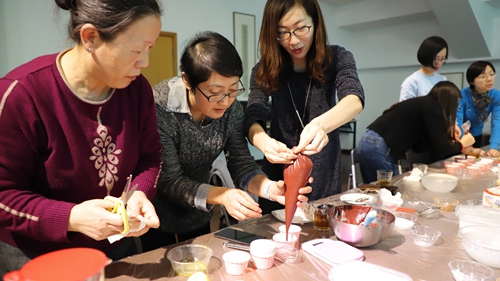 活动伊始,烘焙讲师为大家讲述红丝绒蛋糕富有戏剧性的起源,并详细介绍红丝绒蛋糕的制作方法。百年之前,红丝绒蛋糕是皇室和贵族的专享,后逐渐成为民间常见的下午茶点心,广受欢迎。讲解过后,在烘焙讲师的指导下,学院教职工两到三人一组,分工合作,大家一边制作一边交流心得,对比各自的成果,相互切磋,相互学习,一片欢声笑语。