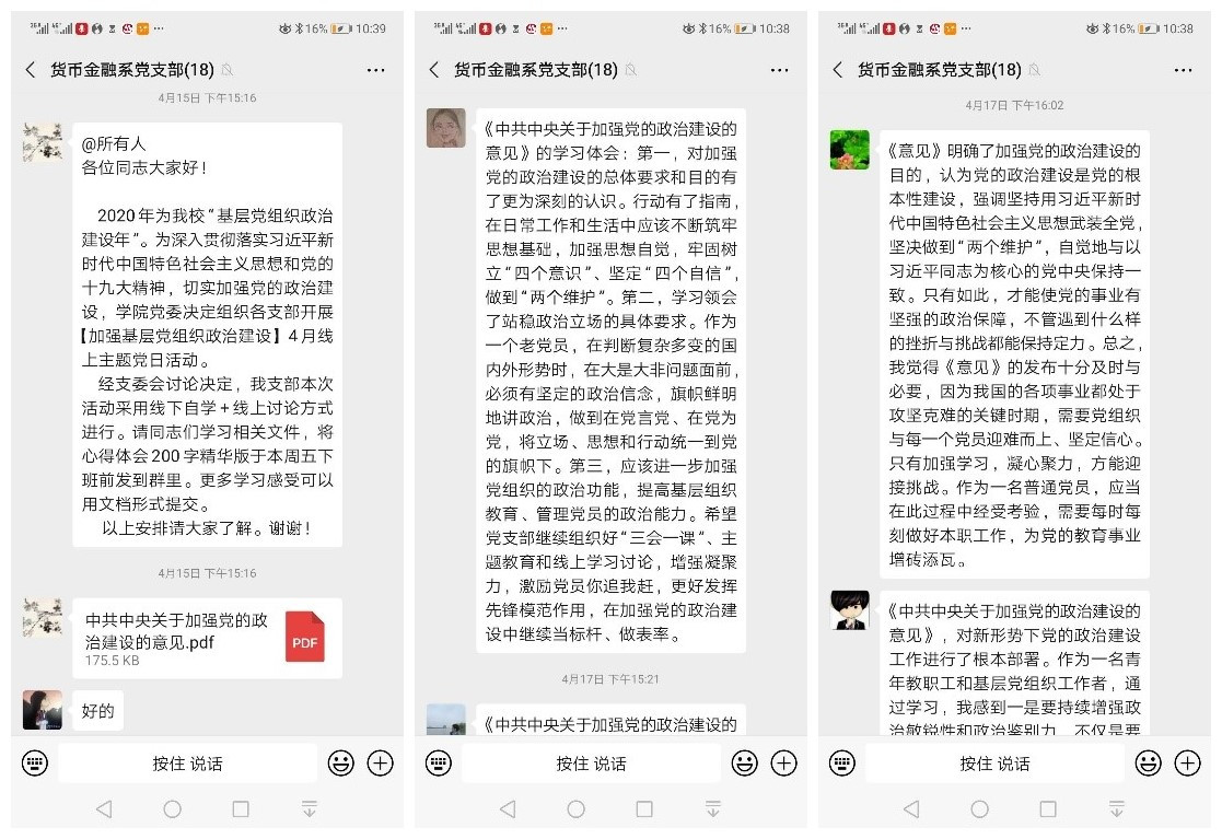 线上主题党日 | 货币金融系教师党支部认真学习指导文件,线上交流心得体会