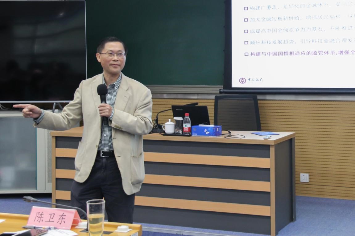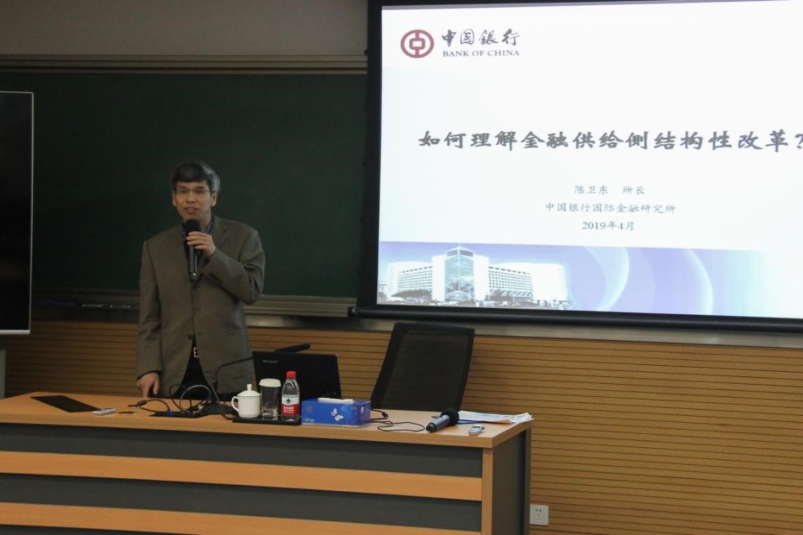 来自我院货币金融系与中国银行国际金融研究所的六名专家学者依次作了主题发言。中国银行国际金融研究所党支部书记、所长陈卫东的演讲以“金融供给侧结构性改革”为题,分别从宏观面、金融资源配置、传统金融新挑战三个角度入手对我国金融供给侧改革的现状与未来进行了深入剖析。他认为,金融供给侧结构性改革的落脚点应该是让金融体系体现出“中国特色”。他表示,新形势下我国传统金融领域面对着绿色金融等新兴领域布局不足、物理网点收缩消亡、金融品种单一、监管滞后、金融机构日渐式微、信息金融机构试错成本高等六大挑战。为了破解这些发展痼疾,要以提高金融效率为核心,紧跟科技发展潮流,大力促进直接融资模式发展,在提高金融服务精确性的同时不断完善监管体系。最后,他表达了对金融业态健康稳定发展的期许。