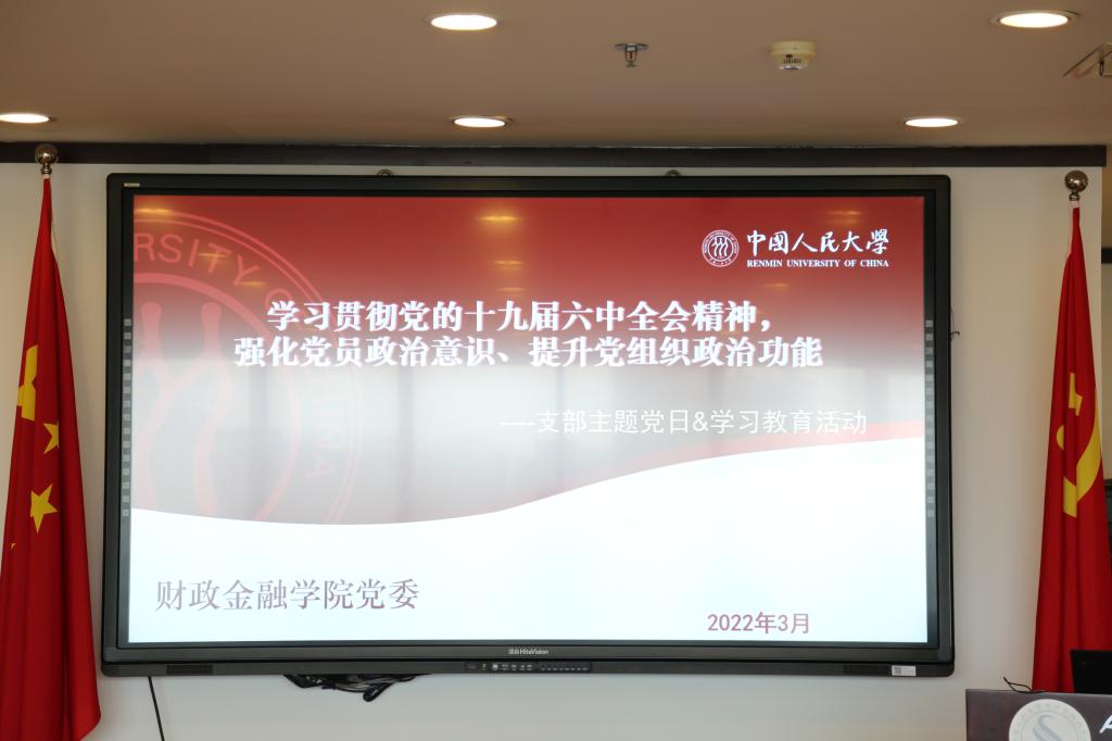 2022年3月16日,夜色 重阳金融研究院党支部与货币研究所党支部于文化大厦602会议室进行支部共建,全体党员围绕“学习贯彻党的十九届六中全会精神,强化党员政治意识、提升党组织政治功能”开展主题党日活动,夜色 片区副处级组织员、人大重阳党支部书记赵锦兰主讲“加强基层党组织政治建设”主题党课。