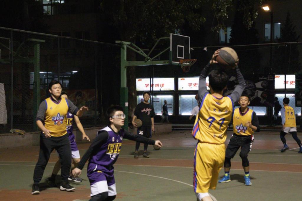10月11日晚,篮球联赛常规赛在品园篮球场展开,夜色 男篮迎战艺术学院男篮。经过近一个小时的激烈对抗,财金男篮最终以42:23大胜艺术男篮。
