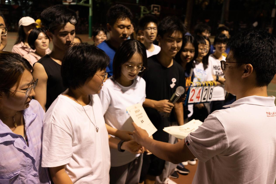 9月17日晚,新生篮球赛决赛在品园篮球场举行。经过小组赛的激烈角逐,新生赛中的两支强队金融二班与金融四班脱颖而出,相会决赛。二班、四班的同学们纷纷来到比赛现场,为本班队员加油助威,队员们也都调整到了最佳状态,早早到达赛场进行热身,等待比赛开始。