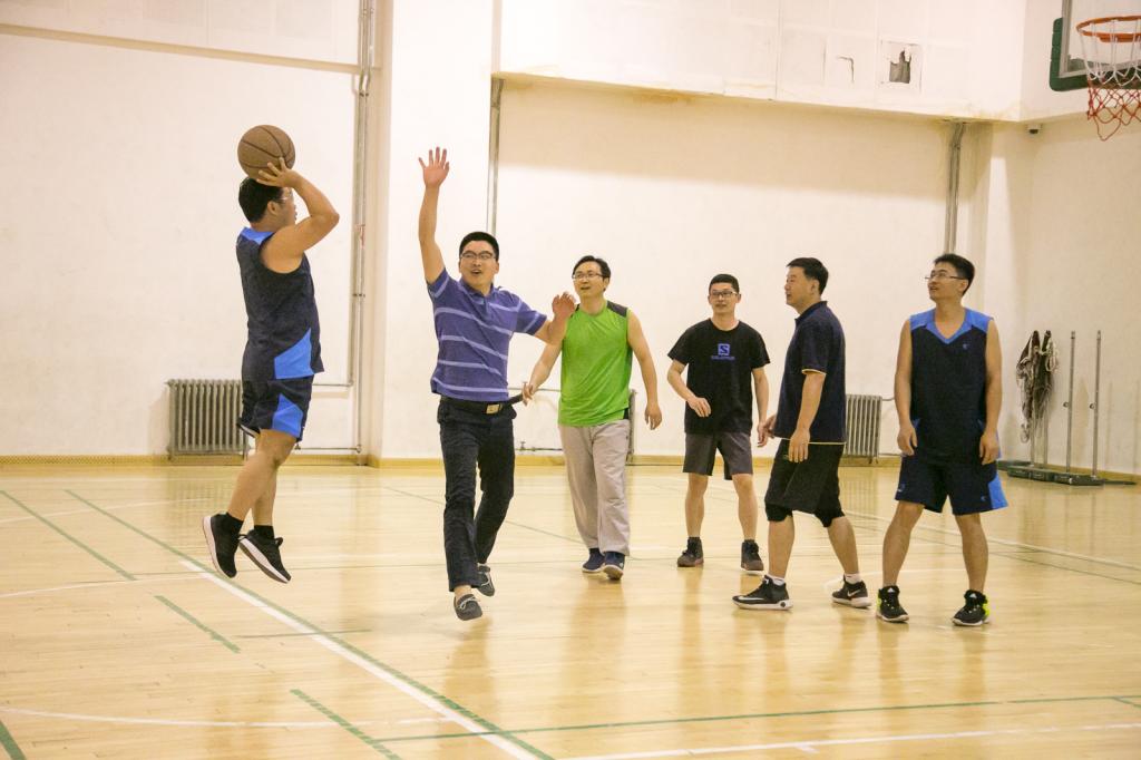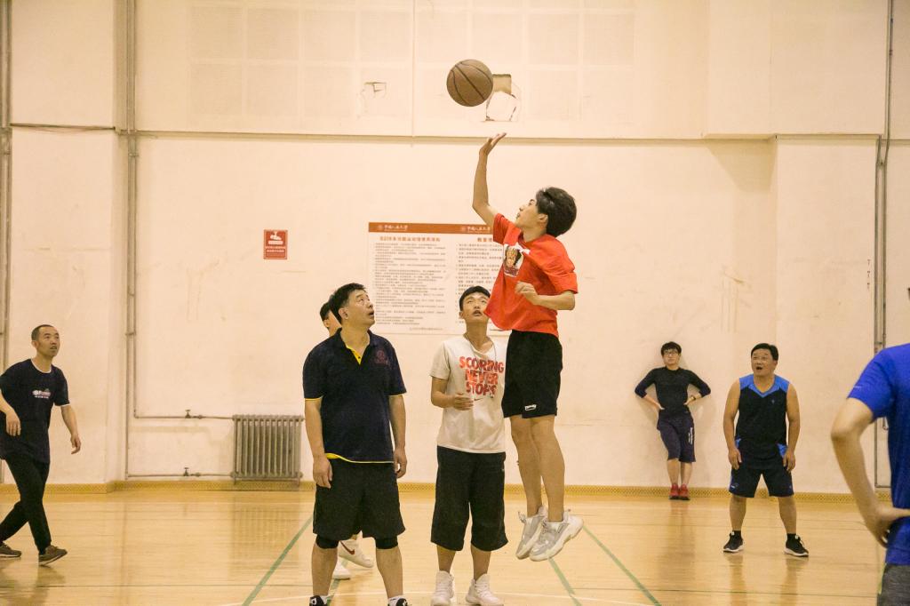 第二环节的比赛更为激烈。为了争夺控球权,老师队和学生队展开拉锯战。双方竭力奔跑,赛场上洋溢着热情与活力。类承曜老师成功从学生手中断球成功,老师队配合默契,黄文彬书记接到球后,成功连投三次。学生队的王庆硕扣球成功,传给野田枫。野田枫以百米冲刺的速度成功将球送到篮筐下,梁鼎配合投篮成功。