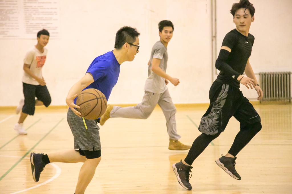 5月10日晚上六点半,我院嘉年华师生篮球交流赛在世纪馆B208准时开始。我院党委副书记黄文彬、类承曜,保险系张俊岩,财政系雷敬华,行政老师贺松霖、冯建彪、齐飞、韩晓冬八名教师与我院八名学生参加了此次师生篮球交流赛。本次比赛分为两个环节。在第一环节中,16位球员分成A、B两组打半场。在第二环节中,16位球员齐上阵,痛快淋漓地打了一场全场篮球赛。