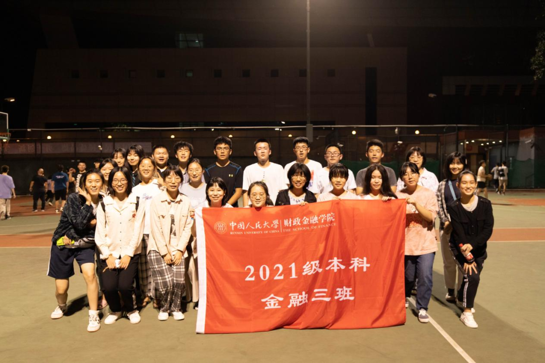 金融二班对战金融三班。哨声响起,比赛开局,场外同学开始齐声为本班呐喊助威,初秋略带凉意的夜晚瞬间被青春的热火点燃。三班李建涛一马当先,首夺两分。二班奋起直追,迅速追平,随后樊成在队友的通力配合下以破竹之势突破内线上篮,为本队连取四分。在观众的喝彩声中,第一节比赛以6:2收场,二班暂时领先。第二节双方队员换为女篮选手,两方势均力敌,赛况一度焦灼,比分未变。第三节双方男篮队员微调,黄檗颀、菅国润各进两分。双方罚球窦鹏翔、王杨博各获一分。最后三分钟,三班顽强拼搏,龙虹宇投入二分,但先前分差过大,无力回天。比分最终定格在11:5,金融二班获胜。