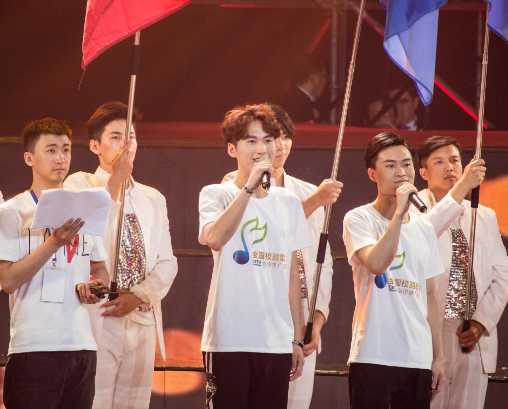 本次歌会的八首新时代原创校园歌曲都由支持单位选送。我校推选了其中两首曲目:《创梦》和《我的故事》。两首歌都由我校夜色 本科生张钶浥作词、谱曲,其中前者由张钶浥本人献唱。《创梦》展望未来,为新时代加油,歌词讲述人生旅程,也更是时代步伐:走过风雨兼程,抬头望向天空,跃动的心如同盛开的花朵,勇敢地向前,每一个梦想都能成功。动听的旋律,配以张轲浥宽广的音域、独特的声音,赢得场下掌声雷动。《我的故事》压轴出场,曲风悠扬轻盈,似是携着原野上的风;歌词浪漫细腻,像是月光下的低语。本首歌讲述属于校园的青春故事,歌颂学生时代的情怀和梦想,勾起人们美好的回忆。应邀前来的歌手们演唱了《与时代共舞》(玖月奇迹)、《老爸》(常石磊)、《一生有你》(水木年华)等流行歌曲,造就了一场完美的新时代音乐盛会。