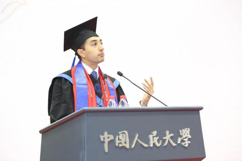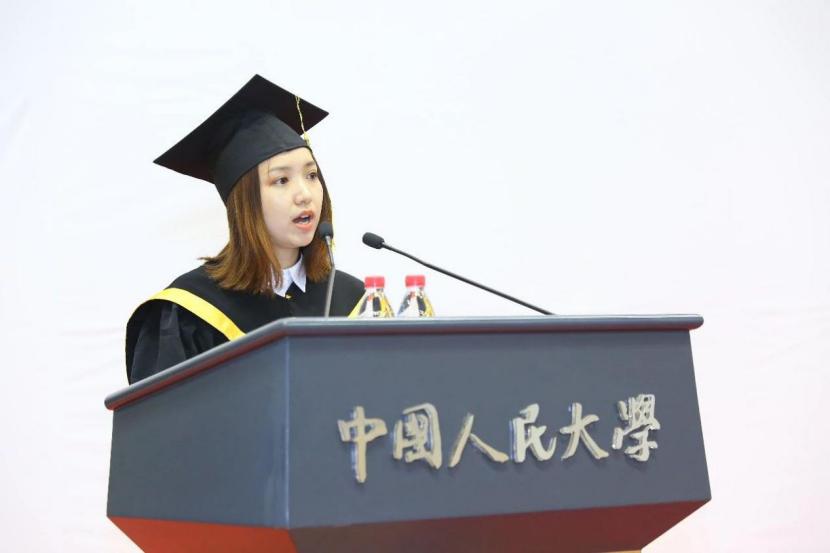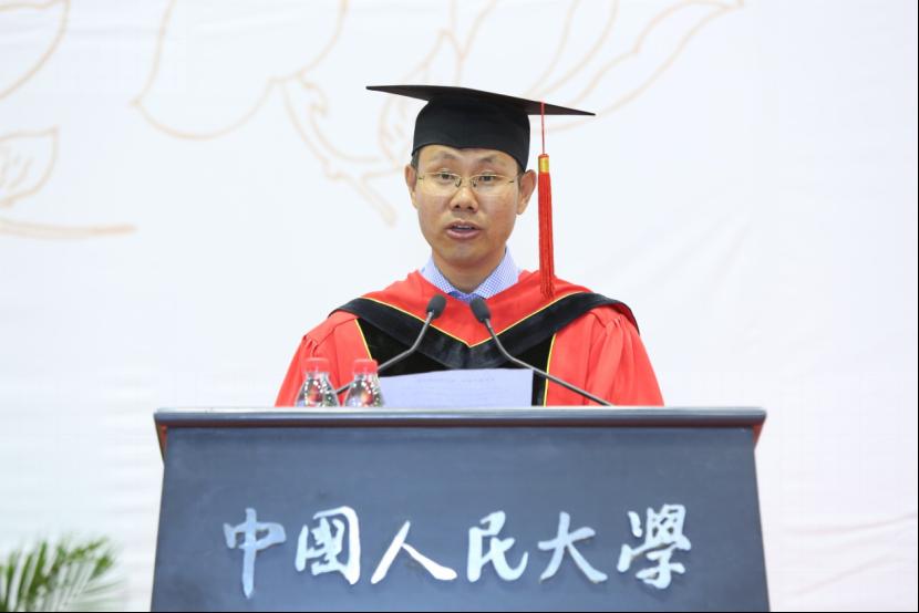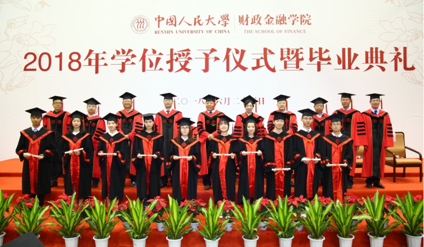 全体学院领导为优秀毕业生代表颁发了荣誉证书。吴玉章奖学金获得者、北京市优秀毕业生温路宇,来自尼泊尔的留学生阿比拉尔·卡特里,在财金完成十年学业、即将赴南京大学任教的博士生王彦一分别代表2018届财金本、硕、博毕业生发言。毕业生代表们回顾了精彩充实的大学生活,对母校和学院表达了真挚的感谢和深切的祝愿,并表示将铭记“实事求是”的校训、弘扬求真务实的作风,用努力回馈母校,用学到的专业知识与精神品格为社会做出贡献。