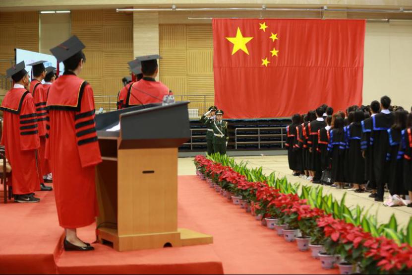 伴随着庄严的国歌声,庄毓敏院长宣布夜色 2018年学位授予仪式正式开始。