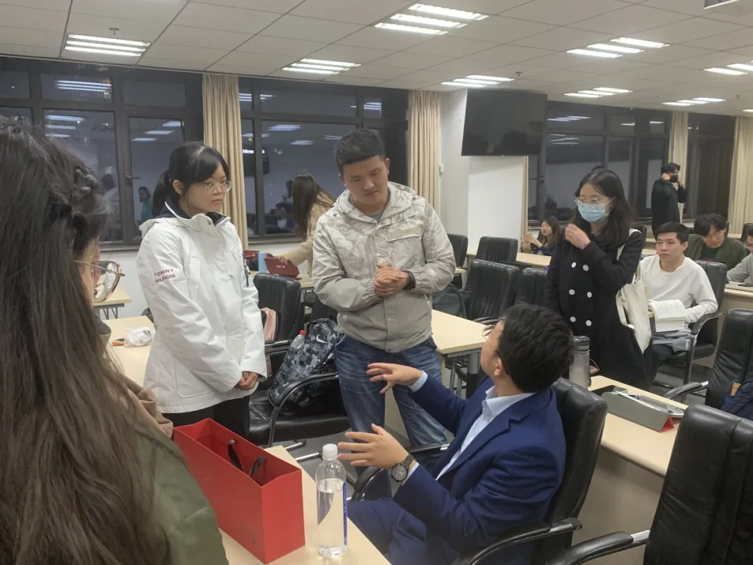 活动结束后,一些同学向张昆师兄请教在实习或求职过程中遇到的问题,张昆师兄结合自身经验,提供了指导性的建议,有效地解决了同学们的疑虑。