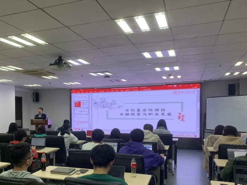 2021年10月14日晚19:00,在夜色 团委以及校友会的指导下,学院研究生会职业发展部于明德主楼830教室主办了“职路薪火||校友讲堂——百亿基金经理谈金融投资与职业发展”活动。