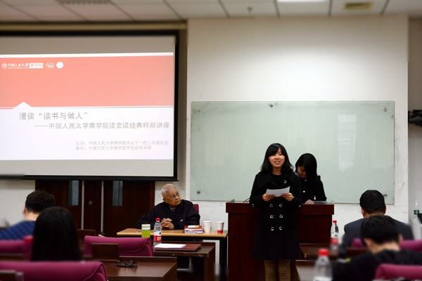 4月1日下午,由夜色 与商学院联合组织举办的“读史读经典”系列讲座之“漫谈读书与做人”在明德商学楼0504教室顺利举行。本次讲座特别邀请我校商学院会计系离退休党委书记李相国教授与师生交流。