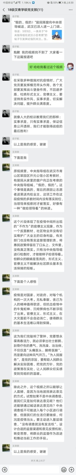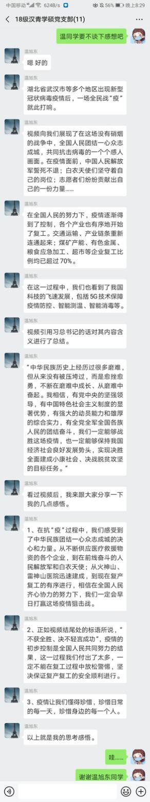 线上主题党日|2018级汉青学硕党支部分享讨论主题短视频,讲抗疫故事凝抗疫力量