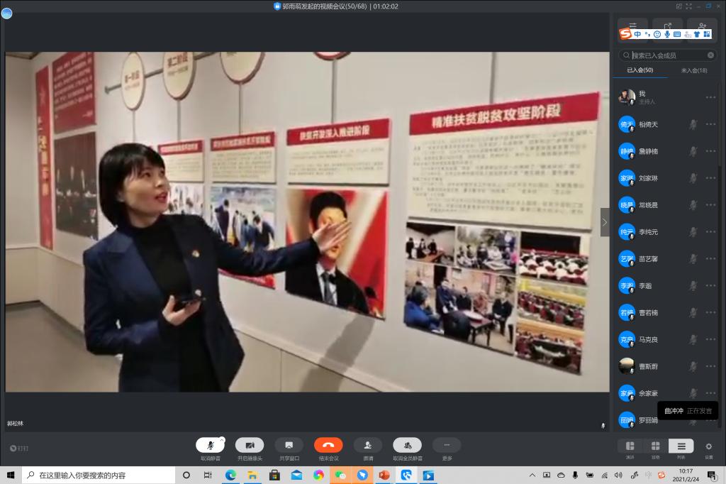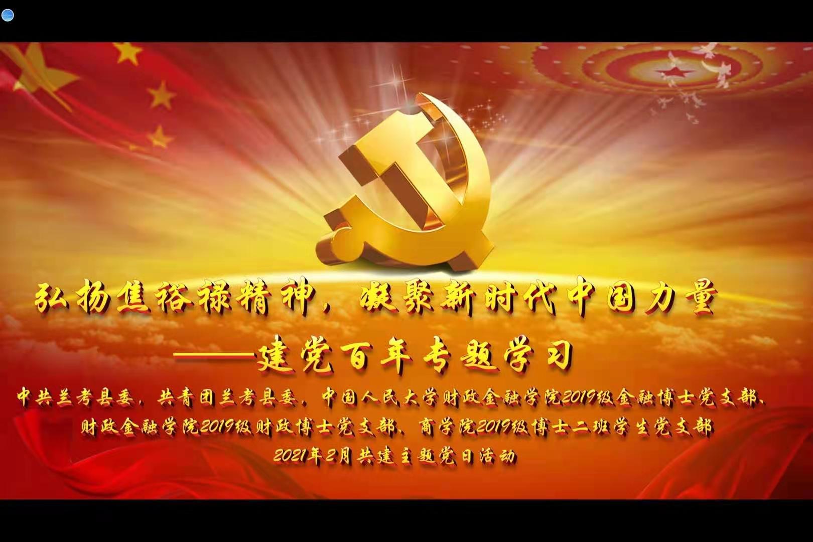 为庆祝中国共产党成立100周年,响应习近平总书记关于学习中国共产党史、新中国史、改革开放史、社会主义发展史(以下简称“四史”)的号召,加强党建带团建工作,形成“听党话、感党恩、跟党走”的浓厚风尚,2021年2月24日上午,在遵守疫情防控规定的前提下,夜色 2019级金融博士党支部携手2019级财政博士党支部和商学院2019级博士2班党支部,与各自所在班级团支部一同,创新性地采取“双会场”学习形式,通过“钉钉”网络直播,带领大家线上“云参观”兰考县展览馆。此次活动在河南省兰考县团县委的大力支持与三个党支部的共同筹划下顺利举办,由2019级财政博士党支部书记郭雨萌线上主持,2019级金融博士党支部书记郭松林和商学院2019级博士2班党支部书记曲冲冲现场组织,共有60多名党员、预备党员积极分子参与。
