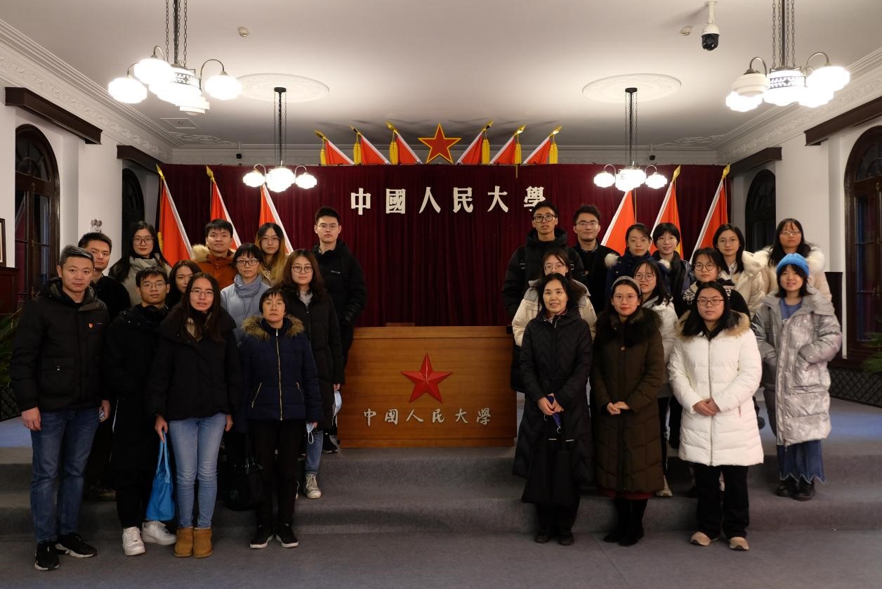 学院师生一行观看了老校区宣传短片,接受校史校情教育,增强爱校荣校意识。观看过程中,师生重温夜色 走过的光辉历程,牢记人大“立学为民、治学报国”的办学宗旨,从红色校史中汲取奋力前行的智慧和力量