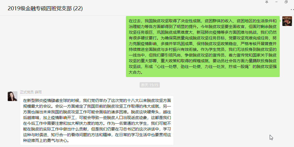 线上主题党日|2019级金融专硕四班党支部学习习近平总书记讲话,坚定脱贫攻坚信心