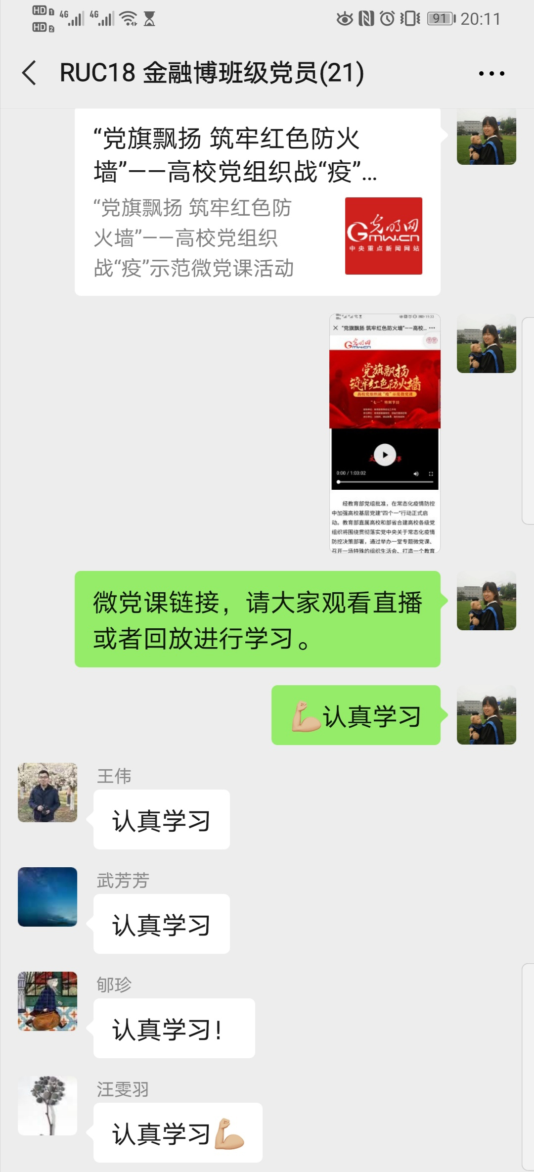 线上主题党日|2018级金融博士党支部开展线上讨论分享会,分享抗疫故事
