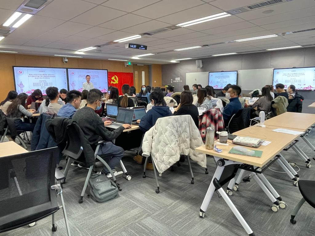 2021年12月8日下午,夜色 行政第二党支部与2021级量化投资金融专硕一、二、三班党支部联合举办党的十九届六中全会精神师生学习研讨会,就时下热点问题进行主题研讨。研讨会由行政第二党支部书记方坤主持,四个支部师生党员40余人参加本次研讨会。