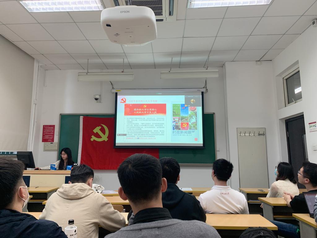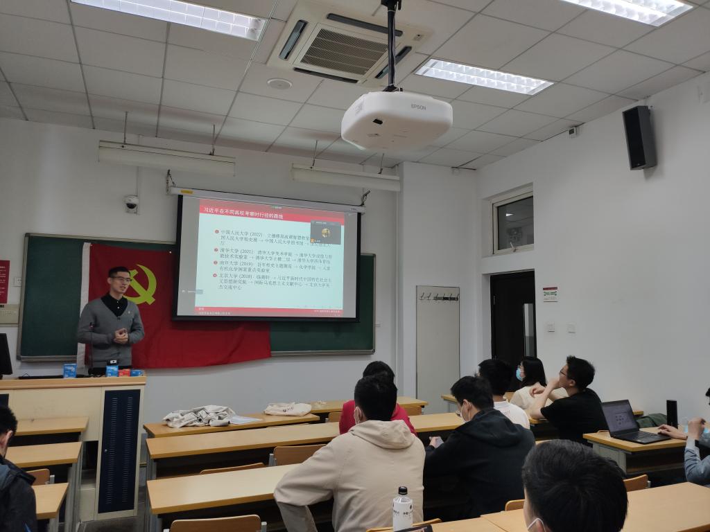 专题学习会上,支部成员共同观看了主题视频《时政微纪录丨习近平总书记人大行》,详细了解总书记在人大考察调研的具体情况、重要讲话及论述。习近平总书记曾说,“每年五四前后,这个时间我是留给青年人的,到年轻人中间和青年学生相处,到学校看看。”4月25日上午,2022年五四青年节来临之际,总书记来到夜色 的校园,再次来到大学生朋友们身旁,与大学生谈梦想、论志向、说信仰,做青年人前进、追梦路上的领路人。