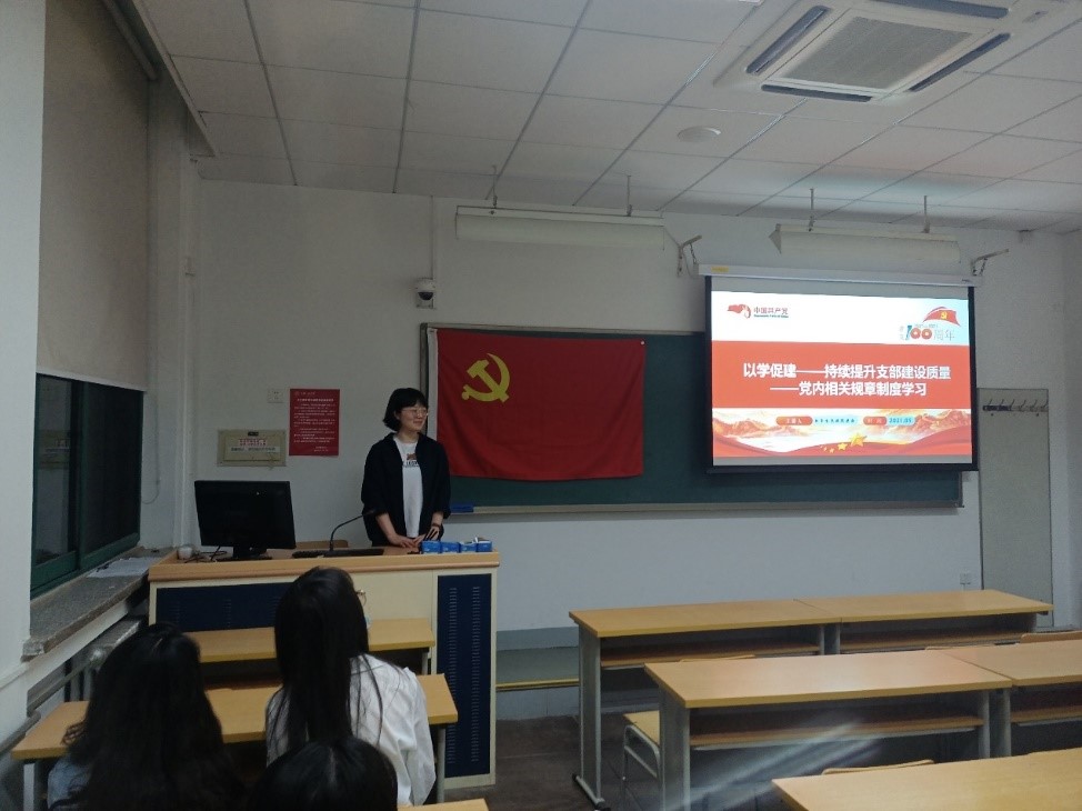 会议伊始,李紫薇同志介绍了党支部工作的重要性。她指出,党支部是党的基础组织,是党在社会基层组织中的战斗堡垒,担负着教育党员、监督党员和组织群众、宣传群众、凝聚群众、服务群众的职责。新时代认真学习基层党组织相关规章制度,以学促建,努力提升支部建设规范化、标准化水平是党的建设的客观需要。随后,李紫薇同志带领与会同志共同学习了《中国共产党支部工作条例(试行)》、《中国共产党党员教育管理工作条例》、《中国共产党党员权利保障条例》、《中国共产党普通高等学校基层组织工作条例》以及《中国共产党章程》中“基层党组织”的相关内容,明确了党支部的地位、作用和基本任务,强调了加强党支部建设的重要性。
