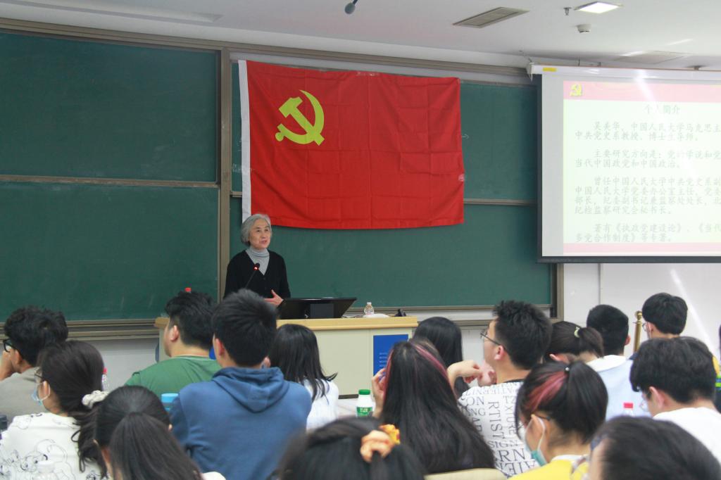 本次党课主题为“党章中的党史”。吴美华教授首先强调了党史学习的重要性。在中共百年华诞背景下,党员和有意入党的积极分子更应坚持马克思主义的立场观点和方法,树立正确的党史观,用全面的、历史的、客观的眼光去看党史。吴美华教授指出,党史的主线是中华民族伟大复兴,主流是成就辉煌,本质是人民至上。学好党史要处理好学术与政治、研究与宣传、历史与现实的关系,注重总结历史经验、认识历史规律、从历史中获得启迪。吴美华教授也讲到党史档案查阅的艰难,指出党史研究是一门独特严谨,需要坚持不懈努力的学科。