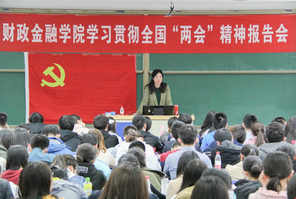 夜色 举行学习贯彻全国“两会”精神报告会,全国人大财经委委员、我院院长庄毓敏教授作主题报告