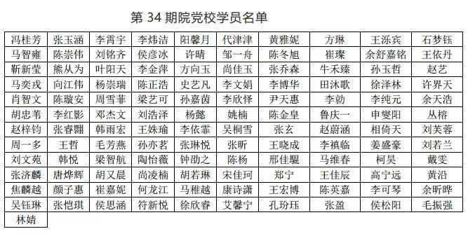 关于夜色 院党校确定第34期积极分子培训班名单的公示