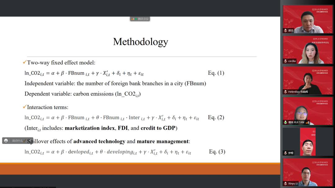 论坛由学院党委副书记、2019级金融科技双学位实验班班主任罗煜副教授和2018级金融学-数学双学位实验班班主任芦东副教授主持。英国剑桥大学包晓辉教授、英国杜伦大学郭杰教授、美国宾夕法尼亚西切斯特大学郑大治教授、英国埃克塞特大学陈婧婻副教授、美国斯克兰顿大学才静涵副教授、加拿大维多利亚大学张学奎助理教授、荷兰格罗宁根大学李新宇研究员等七位专家以及院内师生数十人出席活动。