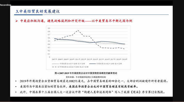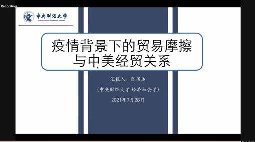 来自中央财经大学的陈闻达同学根据中美关系的相关数据及美国对华贸易政策,提出了需要辩证看待中美贸易摩擦、正确理解摩擦根源以及妥善处理后疫情时代中美经贸关系的看法。