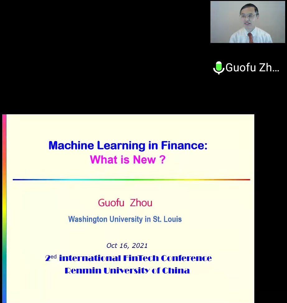 周国富教授发表题为“Machine Learning in Finance: What is New?”的主旨演讲,周教授系统介绍了机器学习在资产定价中的作用,分析了不同机器学习模型的利弊,然后用诸多实证测试结果展示了机器学习模型的最新发展前沿,并提出自己对未来研究的期许。