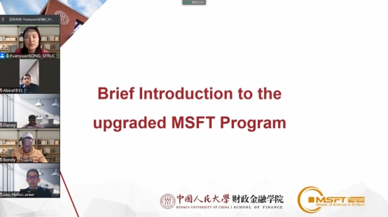 In the next session, Yuanyuan Song briefly introduced the upgraded MSFT Program. She pointed out that as China is leading the FinTech industry’s development internationally, SFRUC is also catching up with cultivating international FinTech leaders to meet the growing market’s talent demand. She introduced new highlights of the program, the cutting-edge course design, the industry advisor system, a variety of extracurricular activities, scholarship policies, admission requirements and etc.
