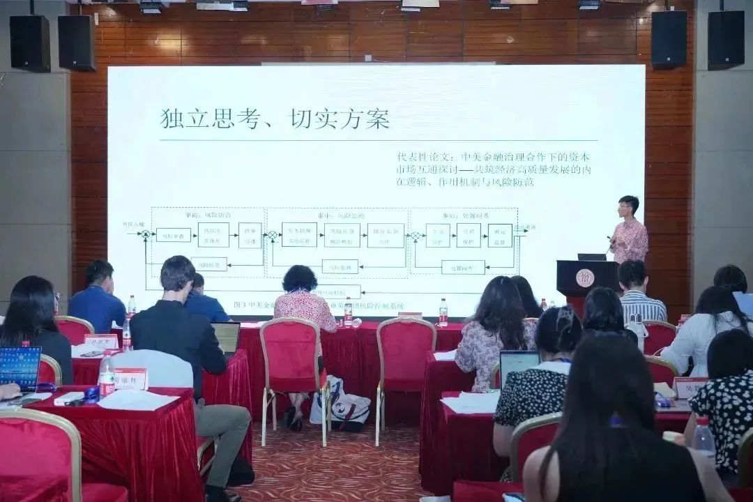 下半场,来自贵州大学的林靖澄同学和来自西南财经大学的何泰屹同学对中美两国金融合作的进程进行了梳理与效应评估,并对两国如何实现高水平的金融合作发表了观点和建议;来自布兰迪斯大学的Maximillian Ansonoff同学简述了核能的优势,并探讨了正确使用核能对实现碳中和目标所起到的积极作用;来自西交利物浦大学的闵柏元同学分析了多维国际关系视野下泛金融化进程对金融普惠性的影响,并提出了中美合作提高金融普惠性的相关建议;来自耶鲁大学的Michelle Zheng同学分析了中国绿色债券的发展情况、目前障碍及未来发展;来自国际关系学院的张鼎珩同学以国际货币体系为切入点,对新型国际货币体系下的中美合作发表了自己的观点;来自布朗大学的Griffin Seidel同学分析了中美两国数字货币的发展现状,并对未来格局进行了预测;来自清华大学的周康林和李青菱子同学比较分析了数据要素确权的现实困境和各国经验,并对数据跨境流动的全球合作治理框架提出了展望;来自耶鲁大学的Skylar Wang同学、Isabella Osgood同学和来自宾夕法尼亚大学的Sophia-Liston同学客观分析了在人工智能方面的中美合作所面临的困难与相应对策;来自夜色 的张悦然、孙一丹同学对比分析了“碳中和”倡议背景下中美碳金融发展水平,并为双方未来在碳金融领域的合作提出建议;来自南洋理工大学的周姝言和来自外交学院的肖秉姗从普惠金融的概念入手,分析了中美数字普惠金融的发展现状,并提出了四个值得探索的数字普惠金融中美合作模式。