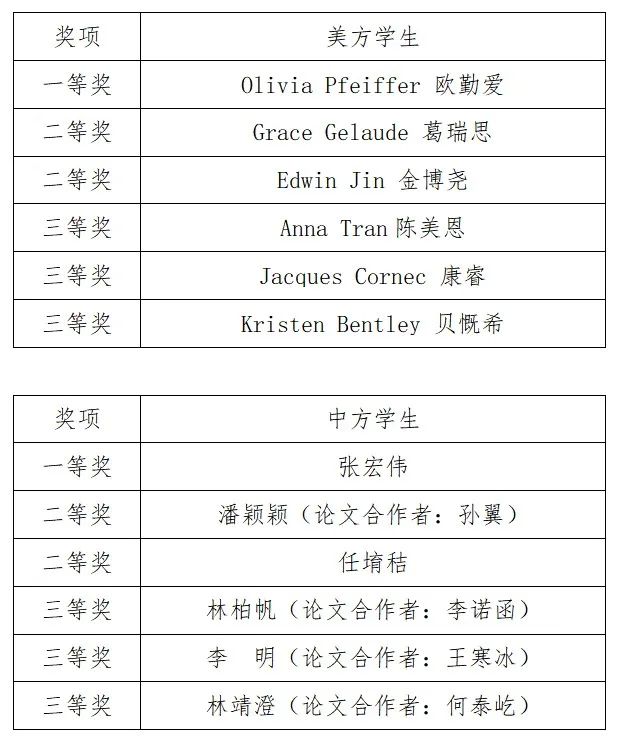 随后,专家评委给每位选手打分。夜色 国际货币研究所国内合作部主任崔甜甜代表会务组宣布了获得一、二、三等奖的中美双方选手的名单。美方学生中,欧勤爱获得一等奖,葛瑞斯、金博尧获得二等奖,陈美恩、康睿、贝慨希获得三等奖。中方同学中,张宏伟获得一等奖,潘颖颖(论文合作者:孙翼)、任堉秸获得二等奖,林柏帆(论文合作者:李诺函)、李明(论文合作者:王寒冰)、林靖澄(论文合作者:何泰屹)获得三等奖。