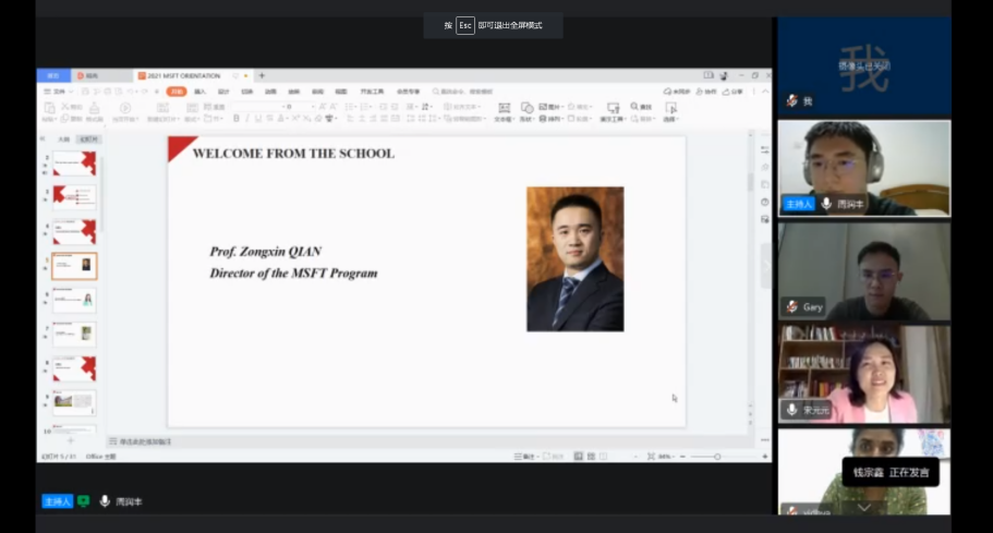 SFRUC Held Online Orientation for the First Students of the Newly-Launched MSFT Program