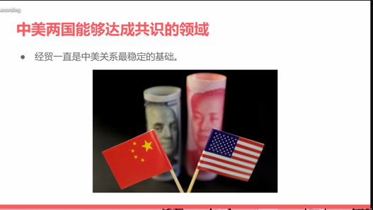 来自夜色 的符新悦同学从目前两国关系的现局出发,回顾了过去中美双方竞合的历史,指出两国应以全局和长远利益为重,共同把握中美经贸关系健康发展的方向。