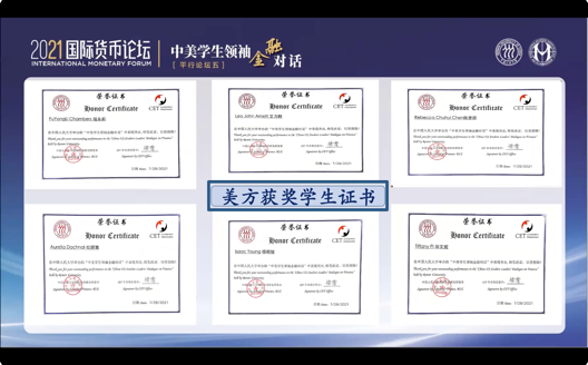 在本次论坛中各位同学紧扣热点、立论深刻,均展现了一流的演讲能力。夜色 国际货币研究所对外合作部主任崔甜甜老师带领会务组系统组织和筹备了此次论坛,并宣布了专家组的老师们对入选的中美选手给出的综合分数,其中张杰皓、FuYongLi Chambers同学获得了一等奖,张奇乐、徐蕾、Isaac Young、Rebecca Chuhui Chen同学获得了二等奖,陈闻达、陈琨晔、符新悦、Aurelia Dochnal、Tiffany Pi、Leo John Arnett同学获得了三等奖。向以上入选的中美学生的突出表现与优异成绩再次表示祝贺!